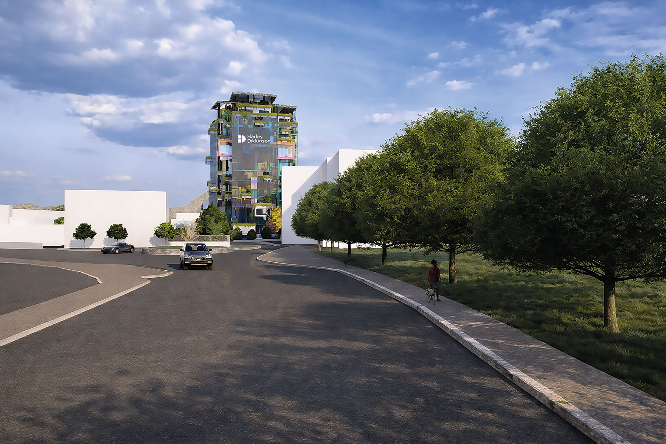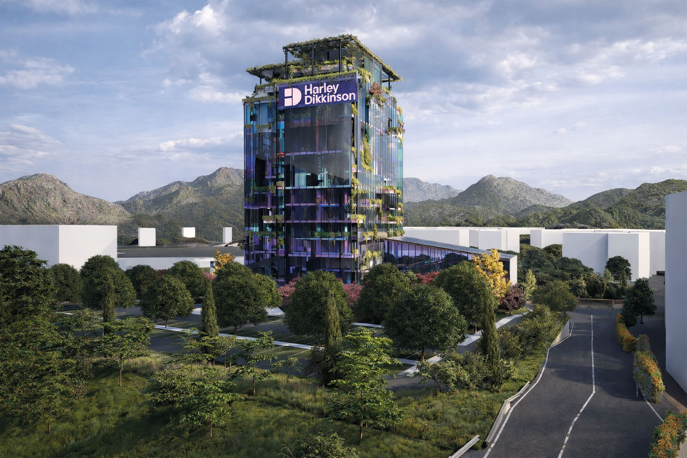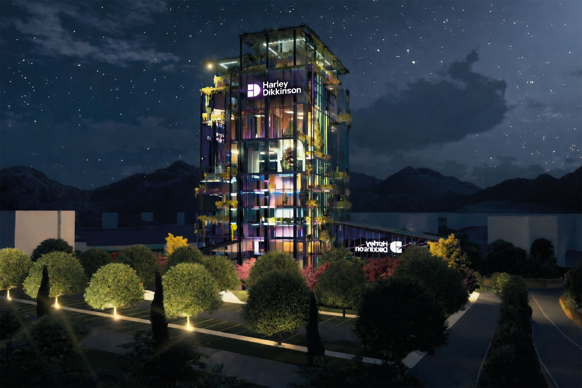 Il progetto Harley Dikkinson è concepito come un edificio direzionale iconico, in cui il contrasto cromatico dei vetri definisce l’identità architettonica e la percezione